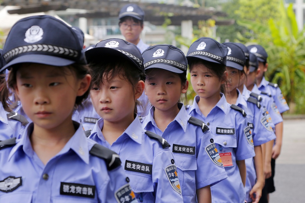 ▲7月9日下午,穿上警服的“小警察”代表们接过营旗,夏令营活动正式开始。