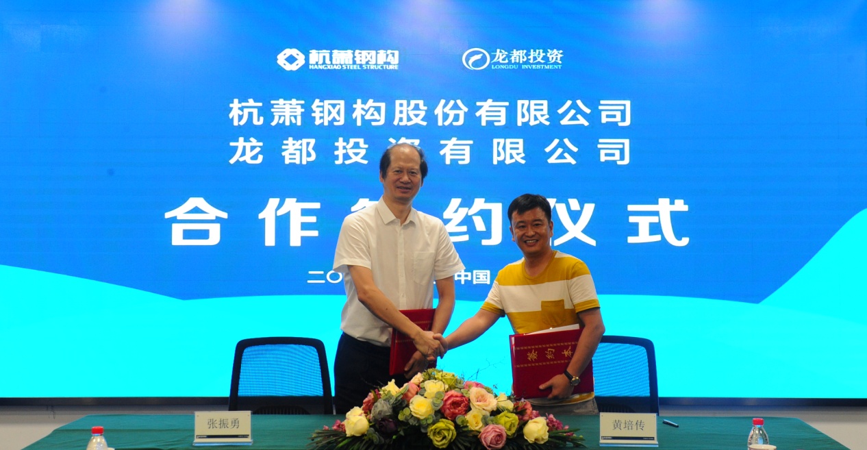 2017年8月29日,杭萧钢构股份有限公司(简称:杭萧钢构)与龙都投资有限公司(简称:龙都投资)在杭州签署战略合作协议,将在浙江省丽水市建设全市首个钢结构住宅产业化项目。丽水市莲都区区长陈豪、副区长俞丽威,丽水工业园区管委会主任管兴标,龙都投资董事长黄培传、副总经理毛志敏,杭萧钢构总裁张振勇、财务总监许琼、副总裁兼董事会秘书陈瑞、副总裁尹卫泽等出席签约仪式。