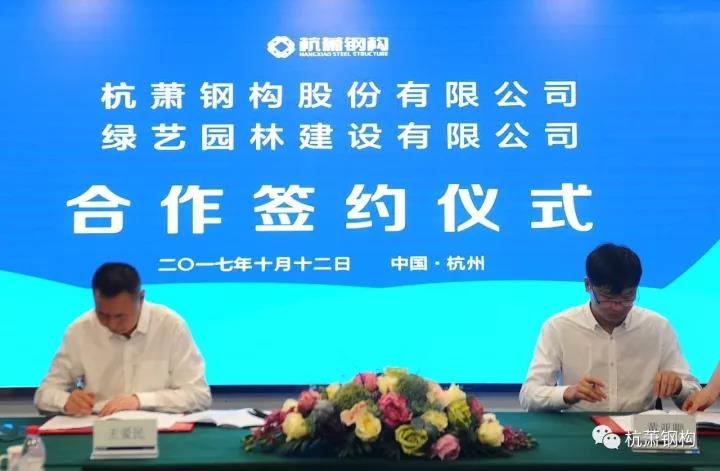 继接连签约天津市、吉林省当地首家战略合作伙伴后,2017年10月12日,又一喜讯传来,杭萧钢构股份有限公司(以下简称杭萧钢构)与绿艺园林建设有限公司(以下简称绿艺园林)在杭州正式签署战略合作协议。