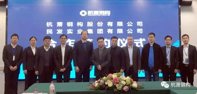 同样在杭萧钢构与民发实业的签约仪式上,双方表达了对合作项目的发展潜力和前景充满信心。民发实业董事长林佺祥、副总裁陈小珂;杭萧钢构总裁张振勇、副总裁陆拥军、副总裁尹卫泽等出席签约仪式并交流。