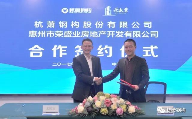 2017年11月28日,杭萧钢构股份有限公司晚间发布公告,披露与惠州市荣盛业房地产开发有限公司(以下简称荣盛业房产)、民发实业集团有限公司(以下简称民发实业)分别签署战略合作协议。合作双方将以杭萧钢构在钢结构住宅体系上的设计、制造和施工等技术、品牌、管理为支撑,共同建设钢结构装配式绿色建筑产业基地。