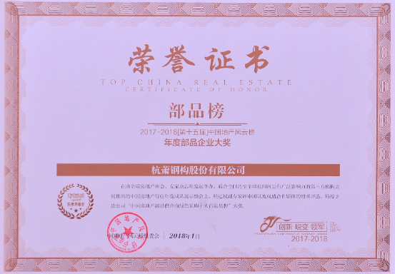 作为全国地产及相关行业共襄盛举的一次盛会,既是回顾2017年的总结性大会,也是2018年新年伊始的大会,本届风云榜呈现了一大批以创新转型为中心,顺应新时代的企业和产品,集中展现了新时代的地产新面貌和新气象。杭萧钢构作为国内首家钢结构上市企业,凭借深耕钢结构建筑领域三十余年的雄厚实力,以及不断创新突破的企业精神,在如今国家大力促进建筑业绿色转型升级的道路上一路领跑,其创新实行的“分享型”商业模式成功助力了多家房地产企业打破与矿产、能源、建筑、家居等多个上下游企业的行业壁垒,形成跨行业广泛合作,有效促进了多个行业的联合发展,杭萧钢构也在本次大会上被评为“中国房地产部品供应商绿色采购十大首选品牌”之一。
