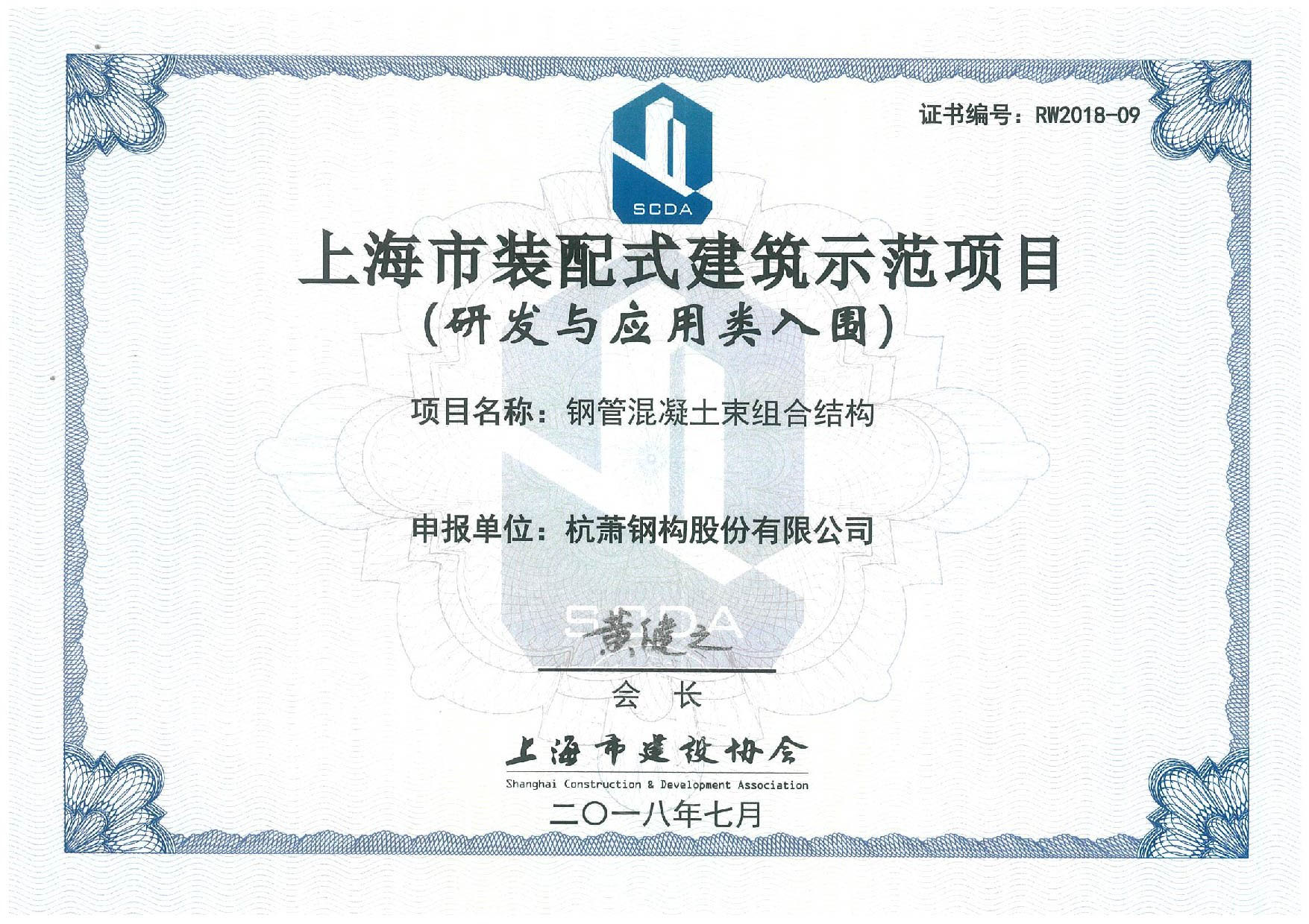 7月26日,从上海市建设协会(沪建协2018第35号)获悉,由杭萧钢构股份有限公司(以下简称“杭萧钢构”)设计研发的“钢管混凝土束组合结构”成功入选上海市装配式建筑示范项目。