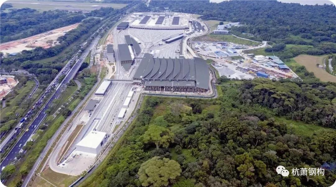 新加坡Mandai Depot 项目是一个集地铁、公交为一体的大型交通运输及中转枢纽工程,总建筑面积达75万余平方米,钢结构单体数量23个,锚栓22000余套,结构形式多为管桁架结构,是新加坡最大的地铁站之一,承担辐射Woodlands主要地铁线路,带动本地区经济发展的关键角色。