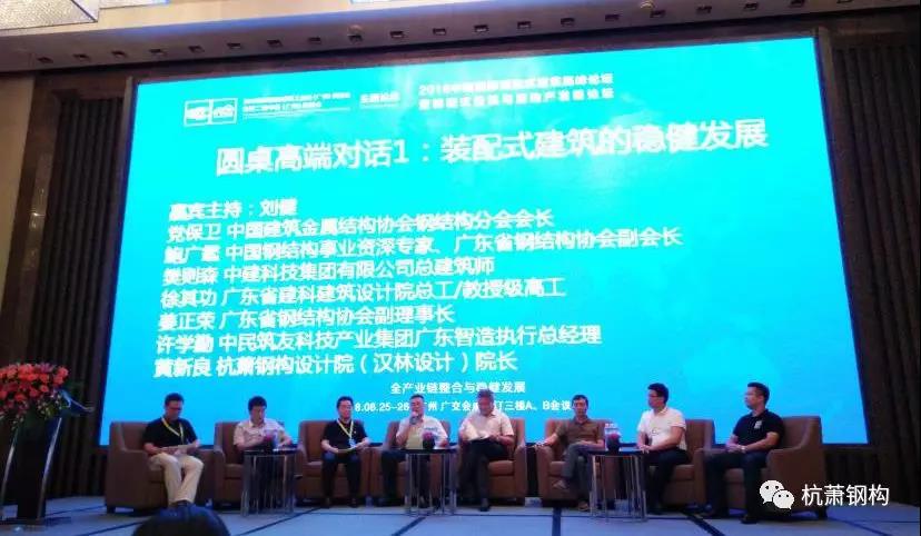 在广州筑博会上,杭萧作为装配式钢结构行业的引领者,由汉林设计院院长黄新良参加圆桌高端对话,并作《装配式钢结构住宅技术与工程应用》专题报告,分析指出了人们对“居住高品质”住宅的向往和要求,介绍了钢结构住宅具有高品质、工业化、绿色发展、标准化的特点,代表了未来住宅发展的新模式。
