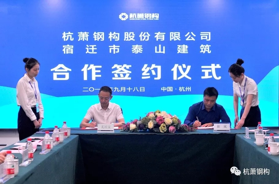 9月18日上午,杭萧钢构股份有限公司(以下简称“杭萧钢构”)与江苏万恒地产集团(以下简称“万恒集团”)旗下——宿迁市泰山建筑有限公司(以下简称“宿迁泰山”)签署战略合作协议。宿迁泰山董事长陈斌、杭萧钢构副总裁尤匡宝作为企业代表签署协议。