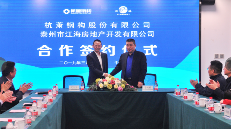 3月18日,杭萧钢构股份有限公司(以下简称“杭萧钢构”)与泰州市江海房地产开发有限公司(以下简称“泰州江海房产”)签署战略合作协议。泰州江海房产董事长李凤祥、杭萧钢构副总裁尤匡宝作为企业代表签署协议。