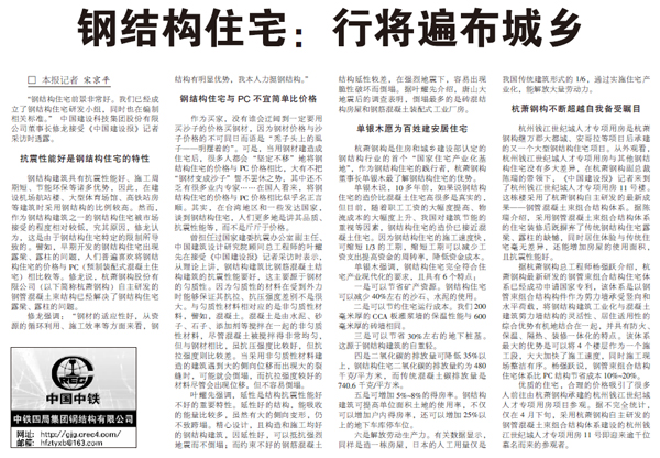 2015年5月11日,《中国建设报》第8版《钢结构》报道:《钢结构住宅:行将遍布城乡》。