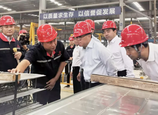 10月11日,湖南省人民政府副省长陈文浩莅临杭萧钢构战略合作参股公司——湖南中天杭萧钢构科技股份有限公司(以下简称“湖南中天杭萧”)装配式建筑基地视察指导工作。株洲市人民政府市长阳卫国、副市长谭可敏、市住建局局长何安国、荷塘区区委书记邬凌云等陪同视察。