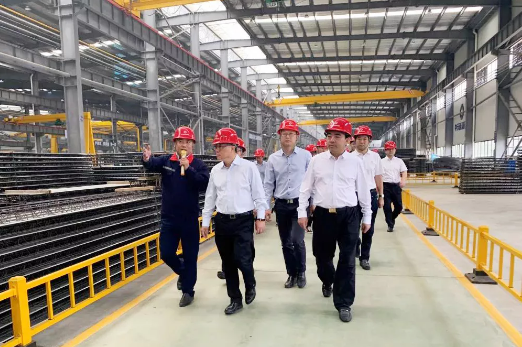 工作人员向陈副省长介绍了湖南中天杭萧装配式建筑基地的发展情况、核心技术体系以及在建项目,并引领陈副省长一行参观了钢管束、楼承板等生产线。陈副省长认真聆听介绍、查看生产线并向陪同人员了解产品的具体情况。