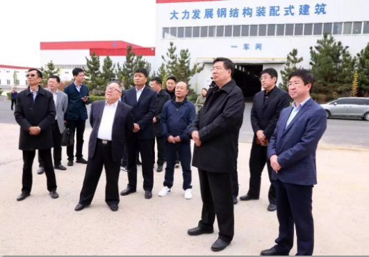 11月12日上午,山东省住建厅厅长王玉志一行5人莅临杭萧钢构战略合作参股公司——烟台蓬建杭萧钢构有限公司(以下简称“烟台蓬建杭萧”)进行考察指导,烟台市副市长李波,住房和城乡建设局局长季善亭、副局长宁宝乾,蓬莱市委副书记李良,市委常委、副市长孙文,住房和城乡建设局局长王海等陪同调研。蓬建集团董事长、总经理梁平携领导班子热情接待。