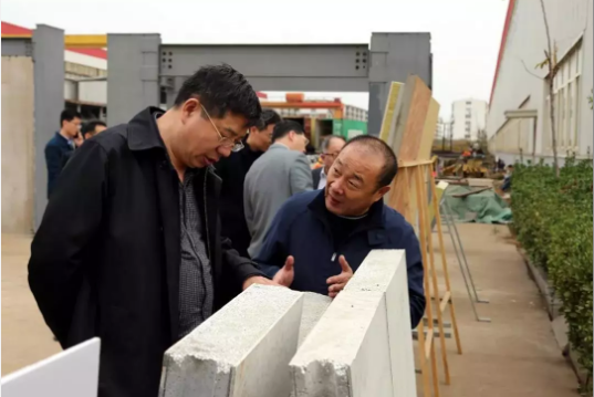 王玉志厅长在详细了解烟台蓬建杭萧装配式产业基地的发展情况,以及装配式建筑配套的内外墙板的性能和优势后,对烟台蓬建杭萧在蓬莱绿色建筑发展中所做出的贡献给予了充分肯定,希望烟台蓬建杭萧抢抓重大机遇,借助全国大力发展装配式建筑产业的东风,做大现有企业,拓宽装配式建筑应用渠道,提升产业综合实力和市场竞争力。