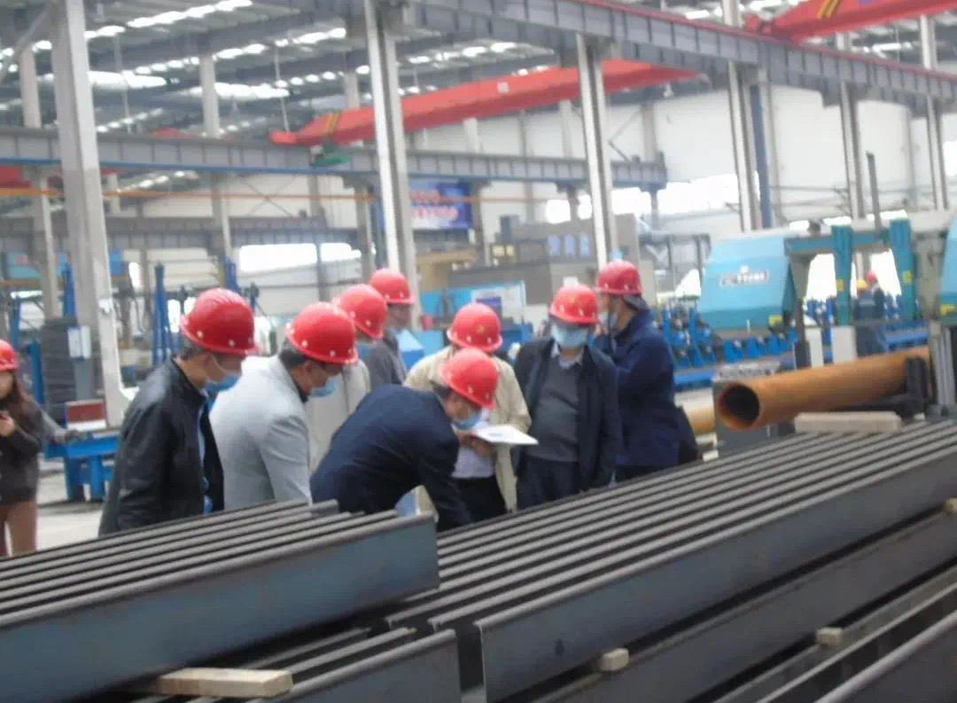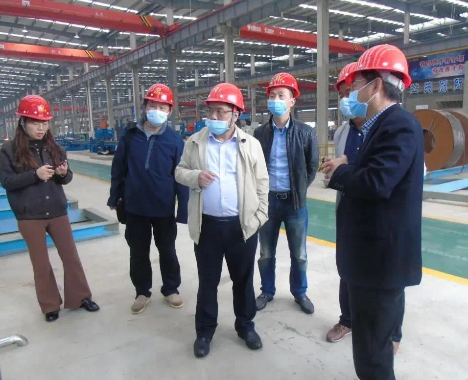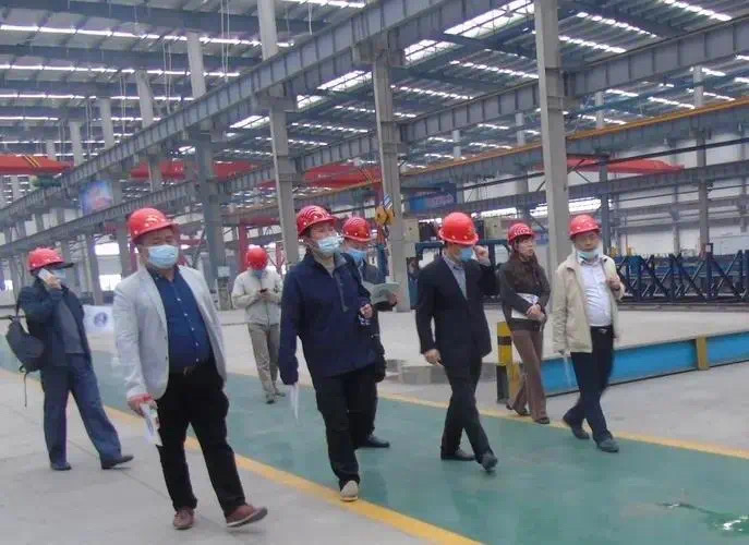 吴志军院长一行深入生产车间,了解了江西绿建城投杭萧的疫情复工情况及产能,实地查看了钢管束模型构件及车间生产情况、结构体系、围护系统及用材用料。刘清华副总经理介绍到,装配式钢结构住宅体系,建筑材料都是工业化生产、机械化施工,没有现场直接湿作业,装配率高,相对于传统施工,装配式建筑施工过程更加安全,工程质量更有保障。