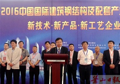 杭萧钢构集团副总裁、教授级高工方鸿强在2016中国国际建筑钢结构及配套产业博览会开幕式上代表钢结构企业发表发言。