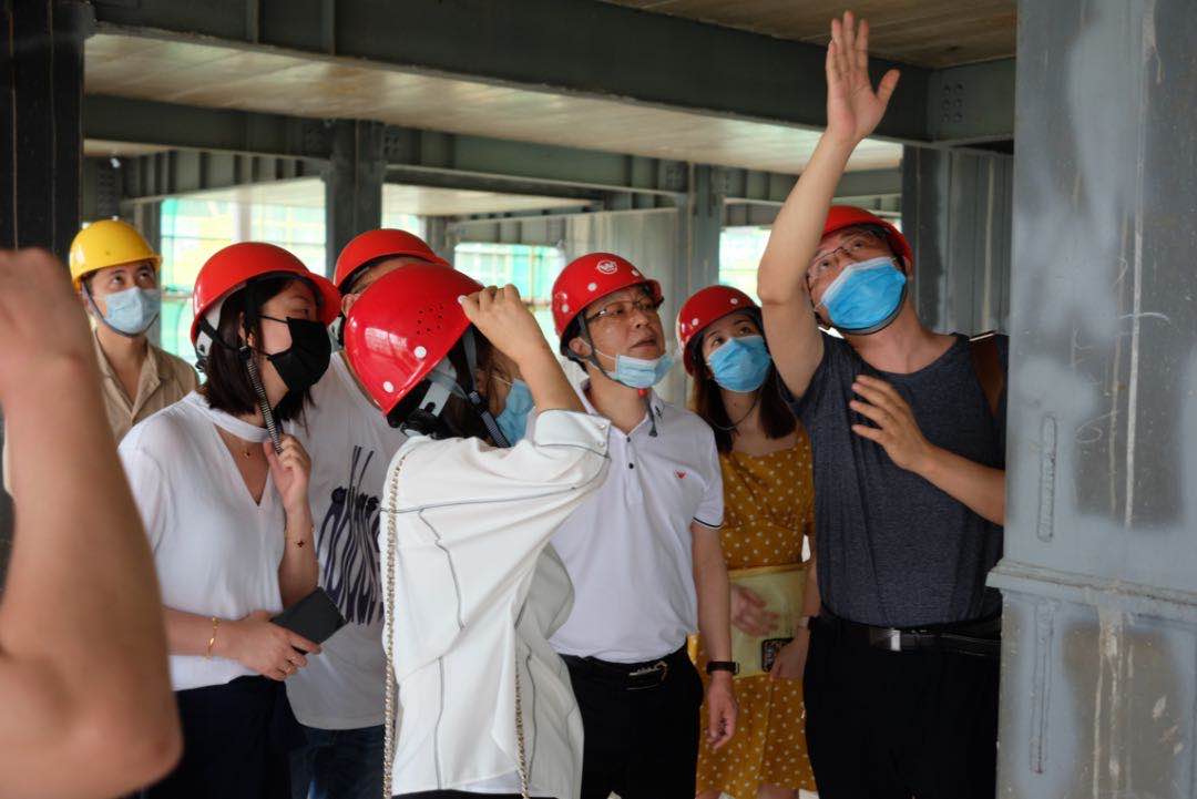 近日,武汉市建筑节能办公室副主任童明德、节能办公室陈宪清、青山区建管站张宏一行莅临杭萧钢构战略合作参股公司——湖北武钢雅苑钢结构建设有限公司(以下简称“湖北武钢雅苑”)承建的山水雅苑3、4#楼项目现场,就钢结构装配式住宅建设情况及企业需要帮扶问题进行交流,提出发展思路,共同推进钢结构装配式建筑在武汉市项目建设中的应用。项目建设单位、总承包单位、设计单位、监理单位等相关单位共同参加调研。