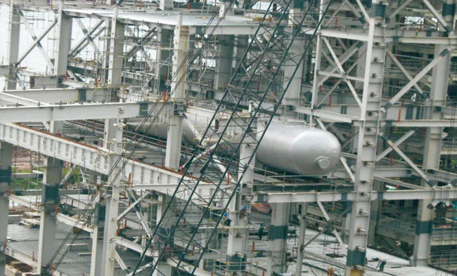 该项目是河北杭萧承接的首个设备精加工钢结构制作工程,属于设备精加工钢结构。项目内部结构复杂、分体构件需预拼装、拼装精度要求高,整体制作要求远高于国内外钢结构建筑工程。
