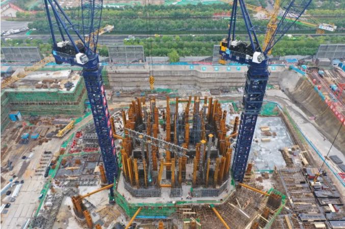 空中造楼机被誉为建筑行业的“国之重器”,中国国际丝路中心大厦作为近500米的超高层单体项目,采用的智能顶升平台是目前最先进、最领先的超高层造楼装备,能让建设者在几百米的高空如履平地,高效进行钢结构安装、模板安装、混凝土浇筑等施工作业。
