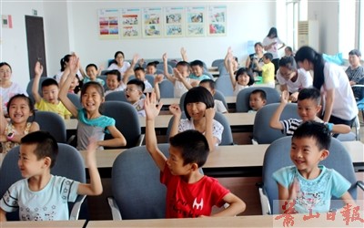 “小候鸟们”在“假日学校”的课堂上踊跃举手发言
