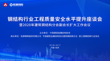 2020年10月17日,钢结构行业工程质量安全水平提升座谈会暨2020年建筑钢结构分会副会长(扩大)工作会议在浙江杭州万郡绿建展示中心隆重召开,来自全国各地建筑钢结构分会副会长单位代表120余人出席。