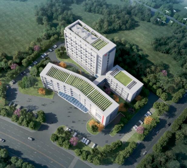 该项目位于海南省琼海市,总占地面积60亩,总建筑面积为27464.68㎡。地上建筑共有1#实验和培训楼、2#业务楼,建筑高度为45.3m,一层地下室,层高5.25m。