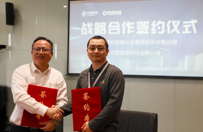 5月10日,万郡绿建科技有限公司(以下简称“万郡绿建”)与中国建材检验认证集团股份有限公司(以下简称“国检集团”)举行战略合作签约仪式。会上,国检集团与浙江门师傅家具有限公司签订绿色建材认证协议。