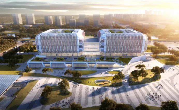 该项目二层及以上功能为审批大厅及后台审批,城市展览馆、公共资源交易中心、附属办公配套主要为建设一体化综合智慧平台,搭建一站式手续办理服务,实现“足不出园”即可办理所需的相关行政审批业务。