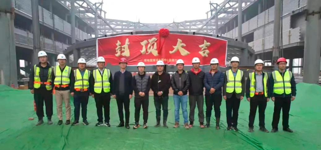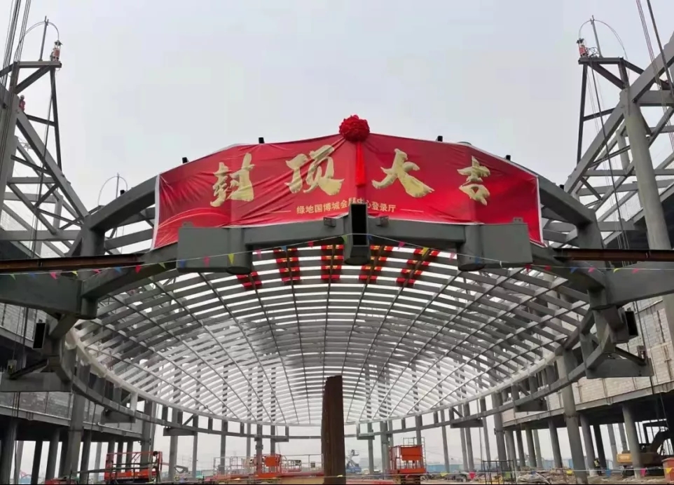 济南绿地国博城会展中心项目登录厅钢结构穹顶封顶完成