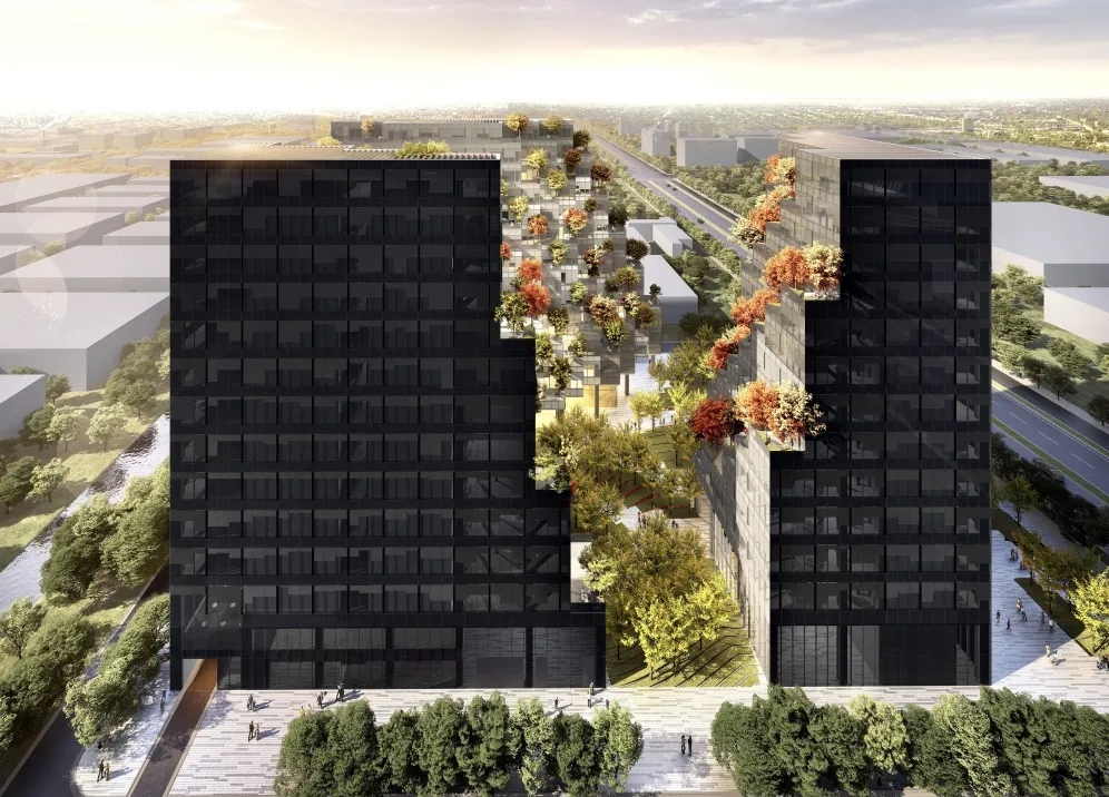 该项目位于上海市青浦区,地下2层,地上10层,高度49.3m。项目由箱型柱、H型钢梁、箱型钢梁及钢筋桁架自承式楼板组成钢框架结构。三栋建筑楼层外观均呈阶梯式,空间视野得到极大拓展。