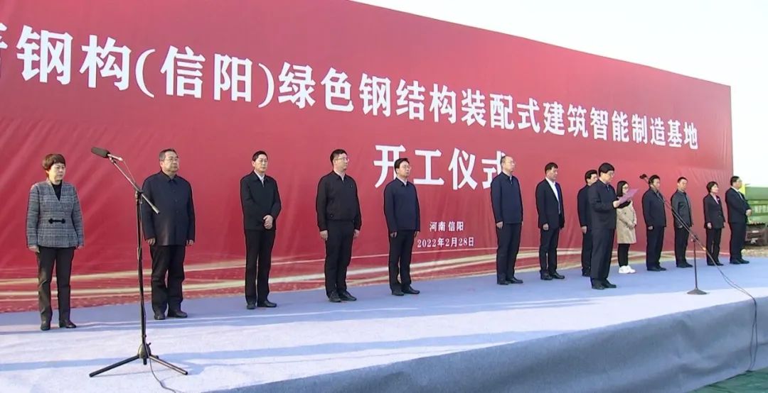 仪式上,信阳市市长陈志伟发表致辞,代表市委市政府向杭萧钢构(信阳)绿色钢结构装配式建筑基地项目开工建设表示祝贺。他说,杭萧钢构一直致力于钢构绿色建筑研发和生产,是我国钢构住宅和装配式建筑、绿色建筑方面的领军企业。杭萧钢构基地项目从签约到开工建设用时仅3个月,是我市今年第一个开工建设的招商引资项目、第一个由工作专班协调推进落地的项目、第一个“拿地即开工”的示范项目,对全面推进“1335”工作布局,加快产业绿色崛起具有重要意义。