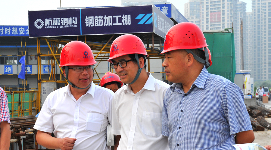9月5日,浙江省建设厅副厅长应柏平、房地产市场监管处处长寿欢林和住房保障处处长谢永明在萧山区建设局局长徐晓福的陪同下莅临由国内首家钢结构上市公司,国家首个钢结构住宅产业化基地浙江杭萧钢构股份有限公司承建的钱江世纪城人才专项用房一期一标段工程现场考察指导。杭萧钢构集团副总裁方鸿强、陈瑞及项目管理人员等在现场热情迎接。应厅长一踏进工地现场,便向身边人员介绍,杭萧钢构是国家首个钢结构住宅产业化基地,这么多年来,一直致力于钢结构住宅的研发与推广,这种精神品质值得赞赏。