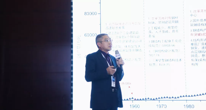 全联房地产商会装配式建筑分会副会长、杭萧钢构副总裁周滨发表演讲