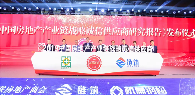 12月18日,由全联房地产商会主办的“诚信求发展,创新享未来”2019中国产地产产业链年度盛典暨《战略诚信供应商研究报告》发布仪式在北京盛大举行,本次盛典旨在通过行业交流盛会促进产业链相关企业快速转型和发展。杭萧钢构股份有限公司(以下简称“杭萧钢构”)受邀出席。