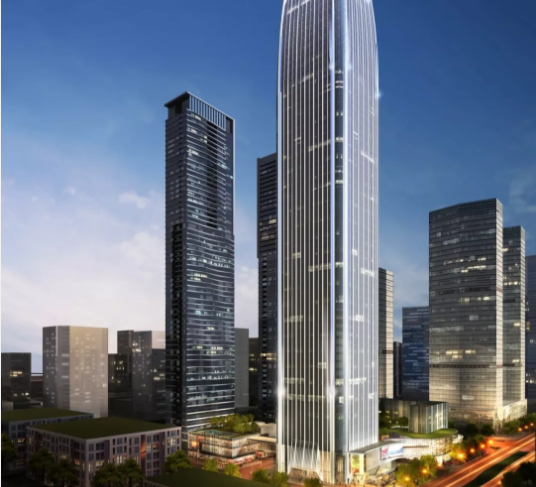 该项目建筑为一类超高层综合体、耐火等级为一级;建设用地总面积约为1.51万平方米,总建筑面积约41.25万平方米;A塔66层、B塔61层、C塔52层、D塔6层,裙房3层,地下5层。写字楼A塔高301.4米,写字楼/公寓B塔高245.1米,写字楼/公寓C塔高243米,商业/D塔高33米。