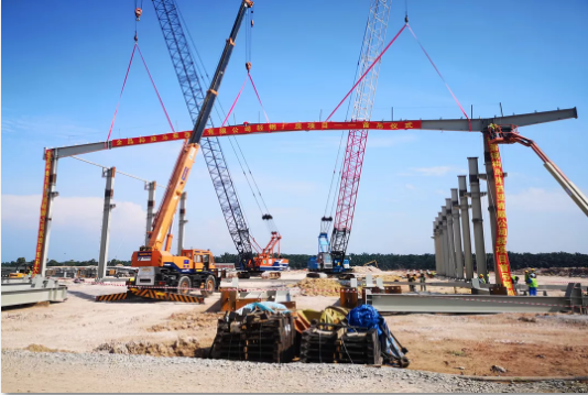 马来西亚金晶玻璃轻钢厂房项目首吊现场