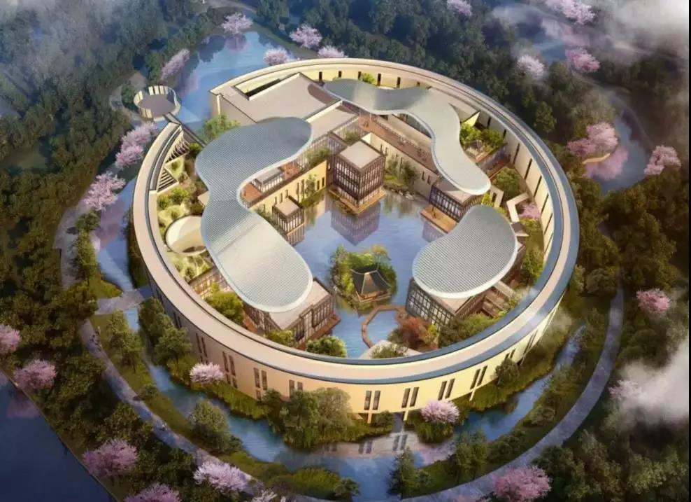 该项目是柳传志、马云等九位企业家和著名学者共同发起创办的实体学校。湖畔大学新校区选址位于杭州市余杭区仓前镇,毗邻梦想小镇,整体占地面积约375亩,一期规划建设约60亩。新校区由建筑大师姚仁喜担任总设计师,主体建筑为圆形,四面环水。