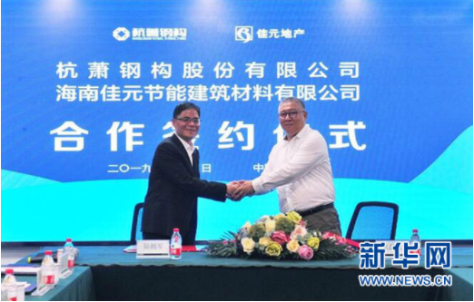 5月8日,杭萧钢构股份有限公司(简称“杭萧钢构”)与海南佳元房地产开发有限公司全资子公司——海南佳元节能建筑材料有限公司(简称“佳元节能”)签署战略合作协议。此次合作将以杭萧钢构钢结构住宅体系为依托,以设计、制造和施工等产业链核心技术为支撑,在海南省定安县、澄迈县共同打造装配式钢结构绿色建筑产业基地。