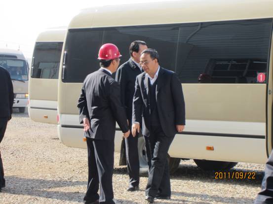2011年9月22日上午,内蒙古自治区党委书记胡春华、包头市委书记郭启俊在各盟、市领导一行40余人的陪同下,来到了位于内蒙古包头市装备制造产业园区的杭萧钢结构加工生产基地进行参观指导。