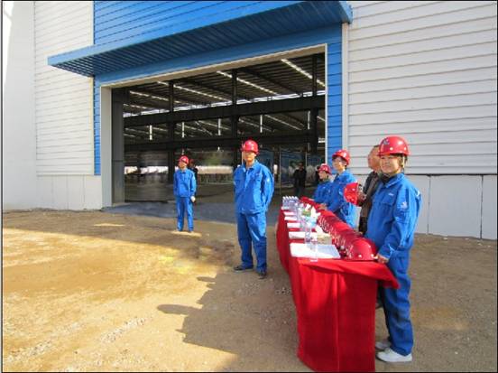 内蒙古杭萧钢构员工身着工作服迎接领导们到来