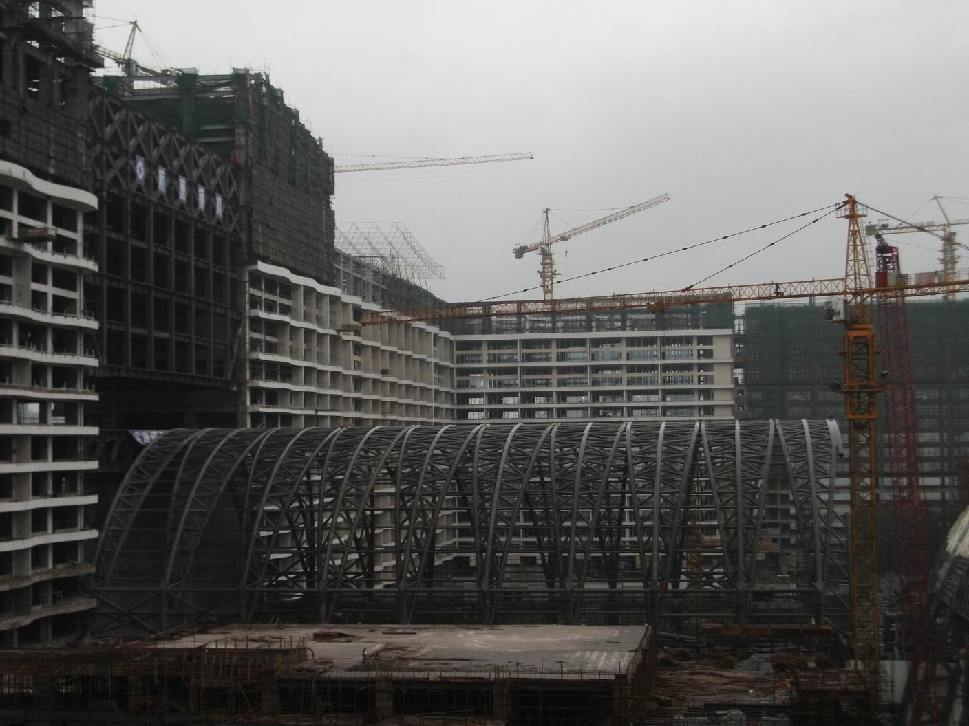 5区入口门厅管桁架的顺利吊装完成,标志着成都新世纪环球中心钢结构项目又一个新的记录的诞生。