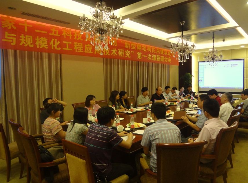 2012 年8 月29 日,国家十二五科技支撑计划项目《新型钢结构民用建筑成套技术开发与应用》的课题“新型钢结构民用建筑设计与规模化工程应用技术研究”在杭萧钢构举行了第一次课题研讨会。同济大学、北京工业大学及浙江杭萧钢构股份有限公司共23 位专家学者和技术人员参加了会议,此外,三位来自中国金属结构协会的代表出席了上午的活动。