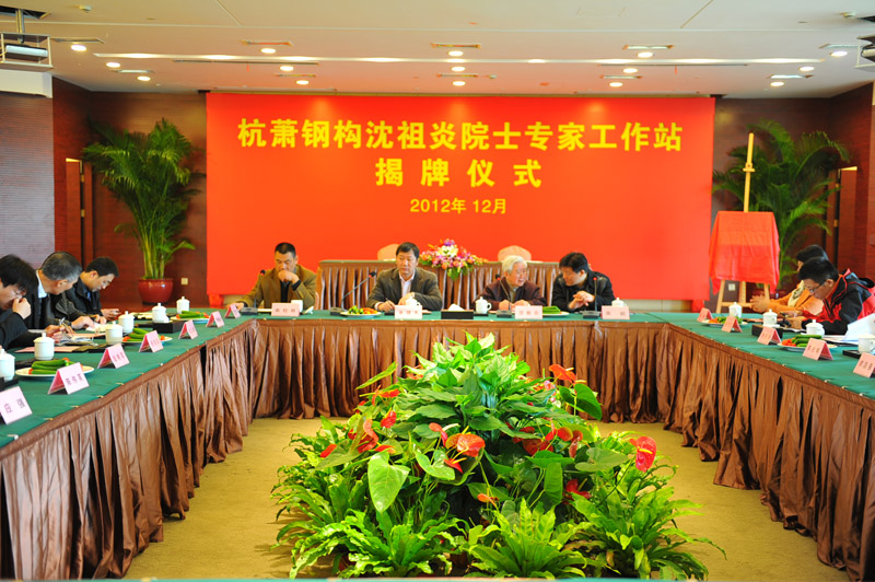 杭萧钢构董事长单银木、总经理陆拥军、总工程师陈友泉、杭州杭萧设计有限公司总经理杨强跃,中国工程院士沈祖炎、同济大学科技处副处长李光明、杭州市科协院士专家服务中心主任吴挺、萧山区科学技术协会副主席俞校明等出席仪式。