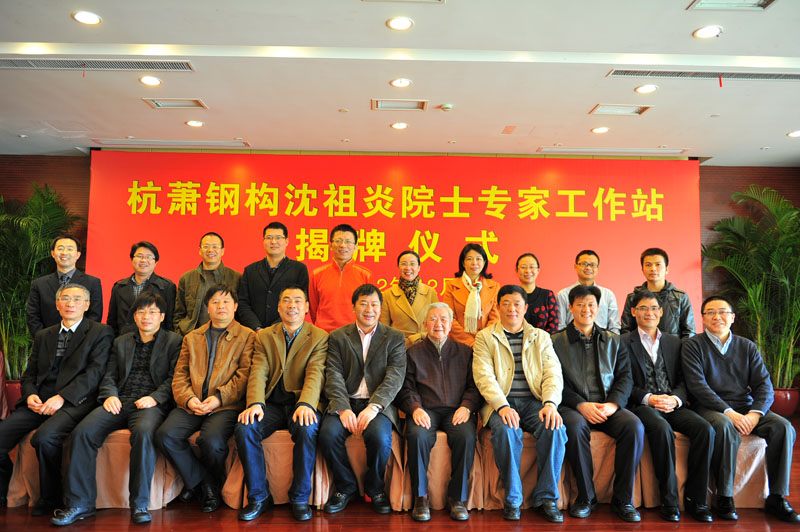 12月3日,杭萧钢构、同济大学、沈祖炎院士、杭州市及萧山区科协合影