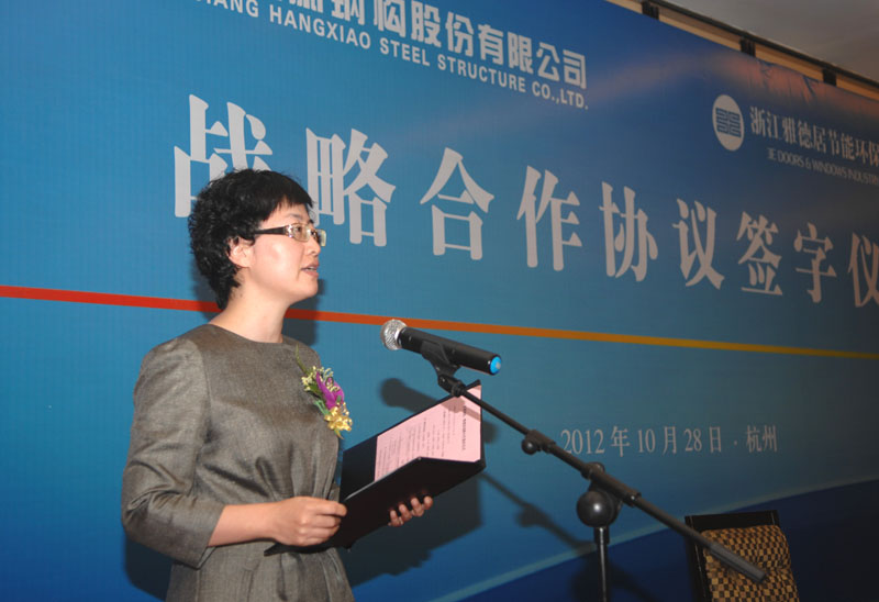 10月28日,浙江杭萧钢构股份有限公司副总裁、董事会秘书陈瑞主持签约仪式。