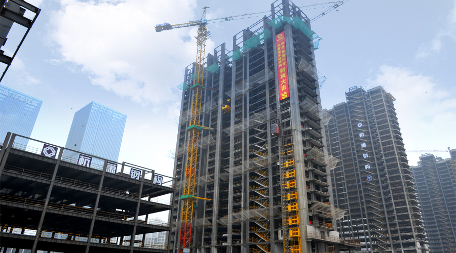 钱江世纪城人才专项用房项目,位于杭州市萧山区钱江世纪城U-13地块。该项目由16幢高层建筑、1座会所和1座幼儿园组成,按绿色建筑二星标准设计,总建筑面积约66万平方米,地下约23万平方米,地上43万平方米,其中:15幢为26-32层人才专项住宅用房,1幢40层超高层公租房。14幢高层住宅建筑采用钢框架支撑结构体系,1幢超高层采用钢框架-混凝土核心筒结构体系,刚封顶的11号楼位于该项目的东北区域,是一幢板式高层住宅建筑,地下2层,地上30层,结构屋面标高为89.6米,建筑高度95.1米,其采用钢管混凝土束组剪力墙新型结构体系建造。