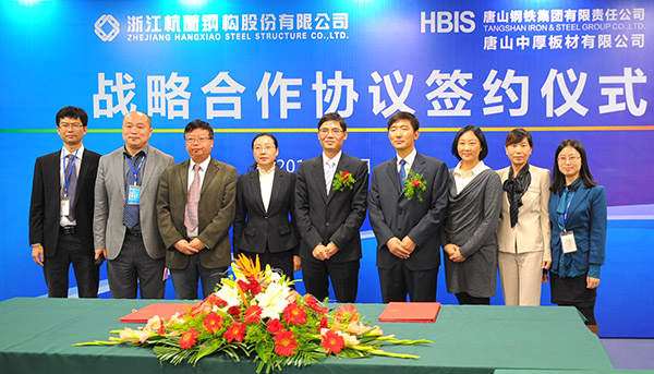 新华网浙江频道11月7日电(赵生祥)11月7日,有“中国钢构第一股”之称的浙江杭萧钢构股份有限公司(以下简称杭萧钢构)与唐山中厚板有限公司(以下简称唐钢中厚板)在浙江杭州签署战略合作协议,杭萧钢构与唐钢中厚板本着互信、互惠、优势互补、双赢的原则,在材料采购、产品品牌宣传、工艺和技术支持等方面达成战略联盟。