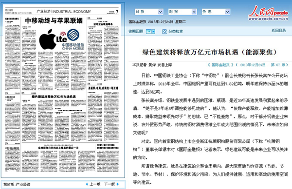 12月24日,《国际金融报》报道:《绿色建筑将释放万亿元市场机遇》