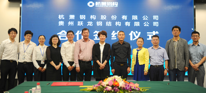 5月28日,杭萧钢构股份有限公司与贵州跃龙钢结构有限公司(以下简称:跃龙钢结构)战略合作签约仪式在杭萧钢构总部杭州瑞丰国际商务大厦举办。双方就杭萧钢构钢结构住宅体系相关技术资源的使用和实施许可等方面,达成了全面合作的战略联盟。