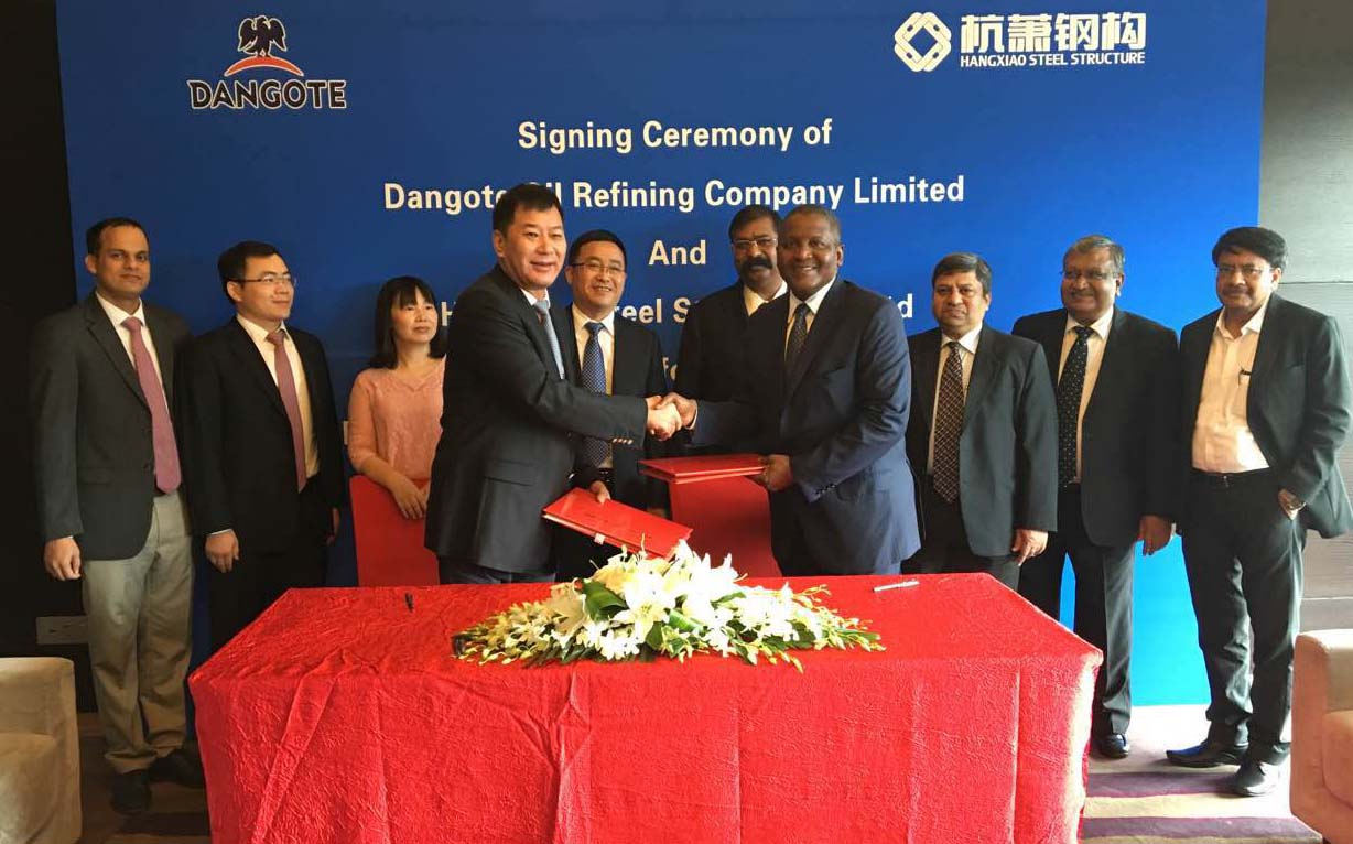 2016年9月1日,杭萧钢构股份有限公司与尼日利亚制造业巨头丹格特集团(Dangote Group)在北京签订了1.12亿美元炼油厂钢结构供货合同。