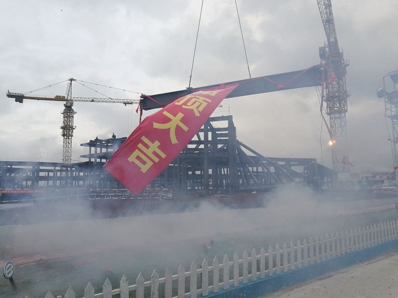 2016年9月28日,随着主体顶部大梁的安装完成,由杭萧钢构承建的上海深坑酒店钢结构主体顺利封顶。