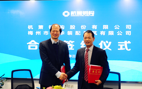 2017年3月31日上午9点18分,杭萧钢构股份有限公司(以下简称:杭萧钢构)与梅州市冠华装配建筑有限公司战略合作签约仪式在杭萧钢构总部杭州瑞丰国际商务大厦举行。